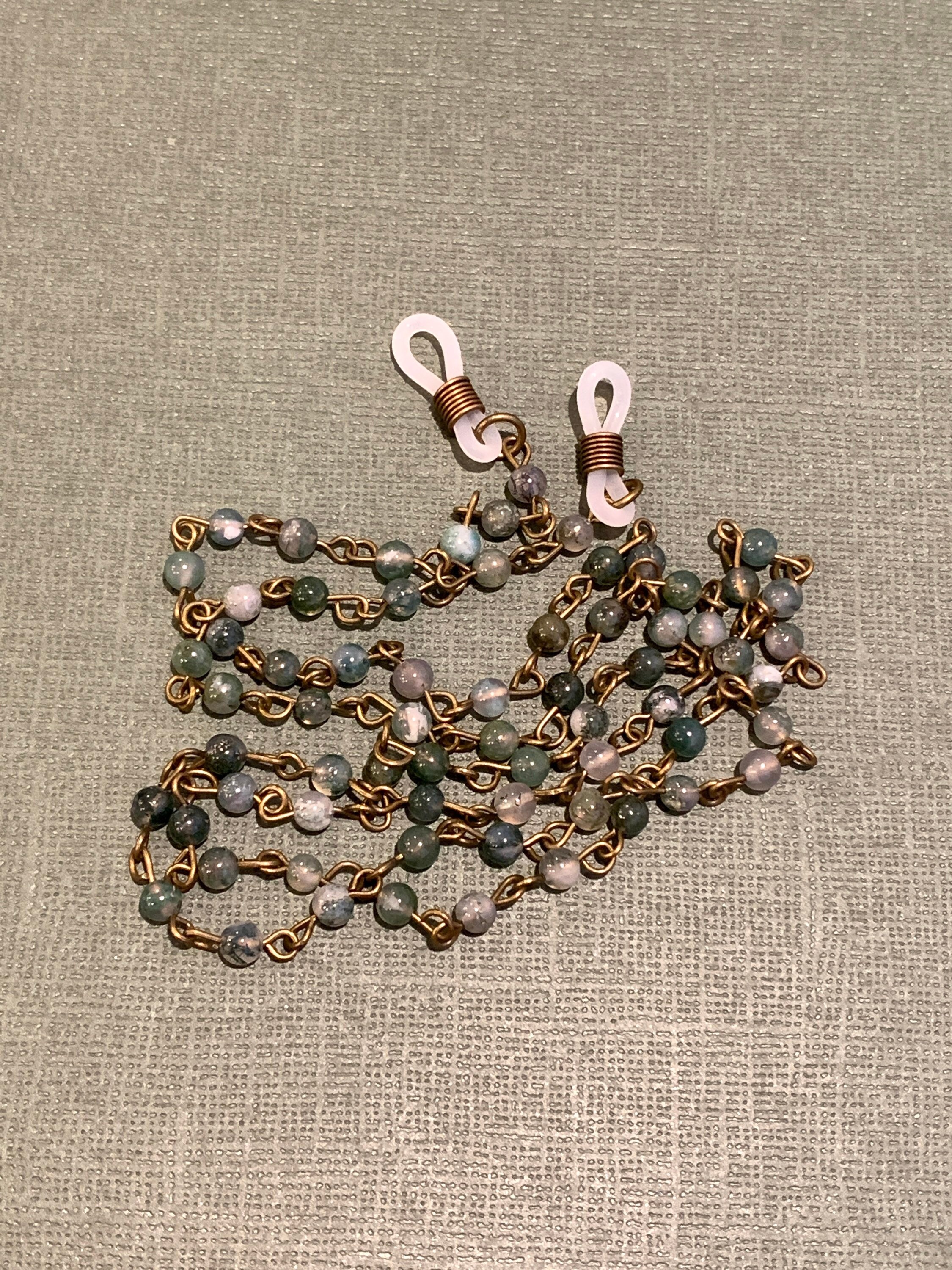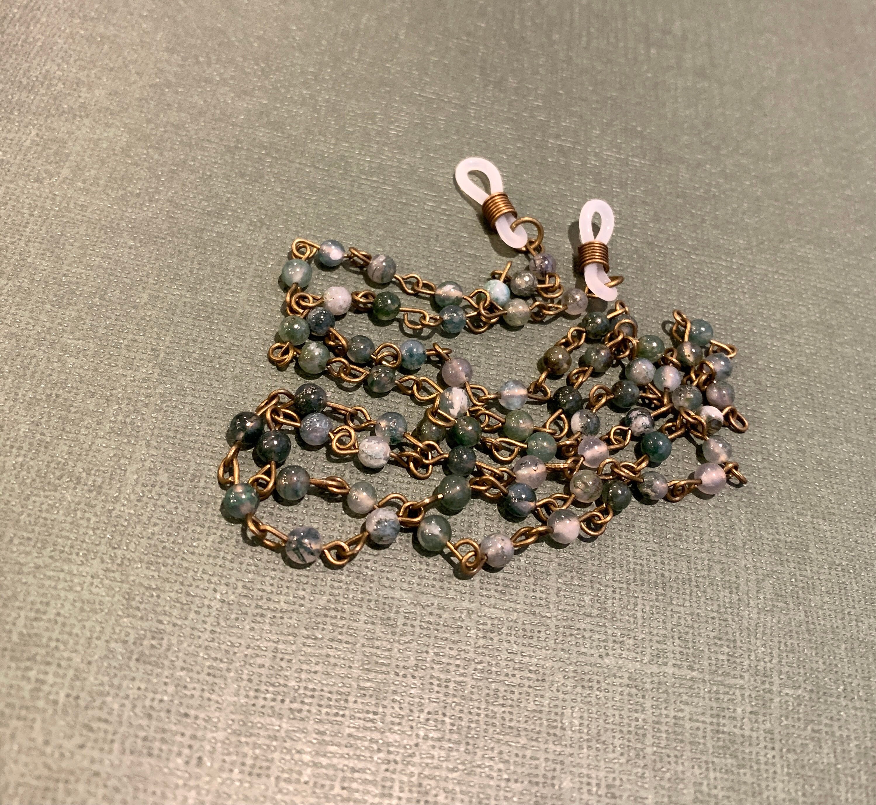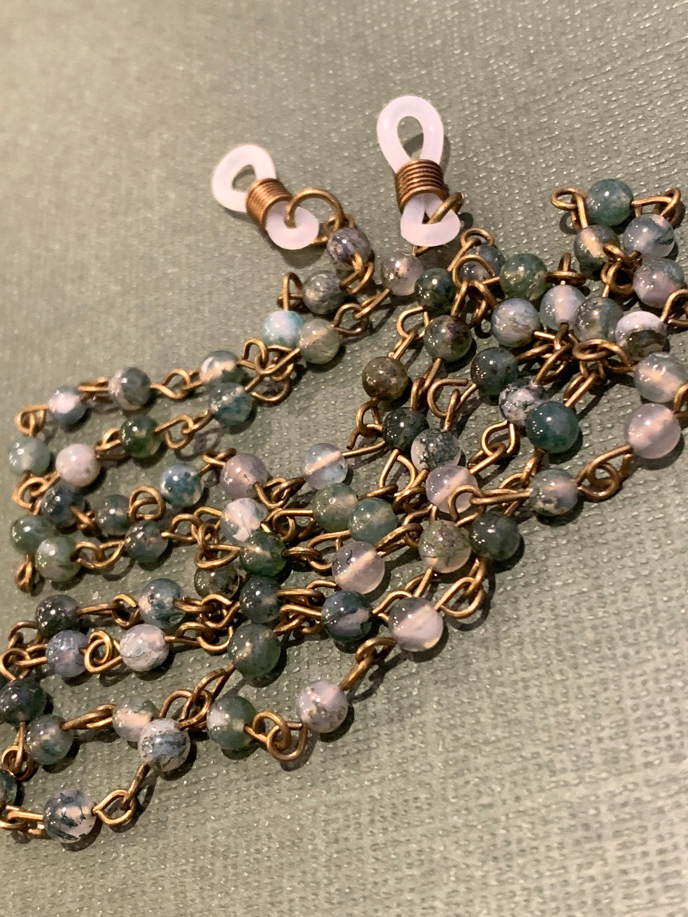 Customized Eyeglass Glasses Natural Indian agate beads with Copper tone Chain 31” length for Women Mother wife Gift