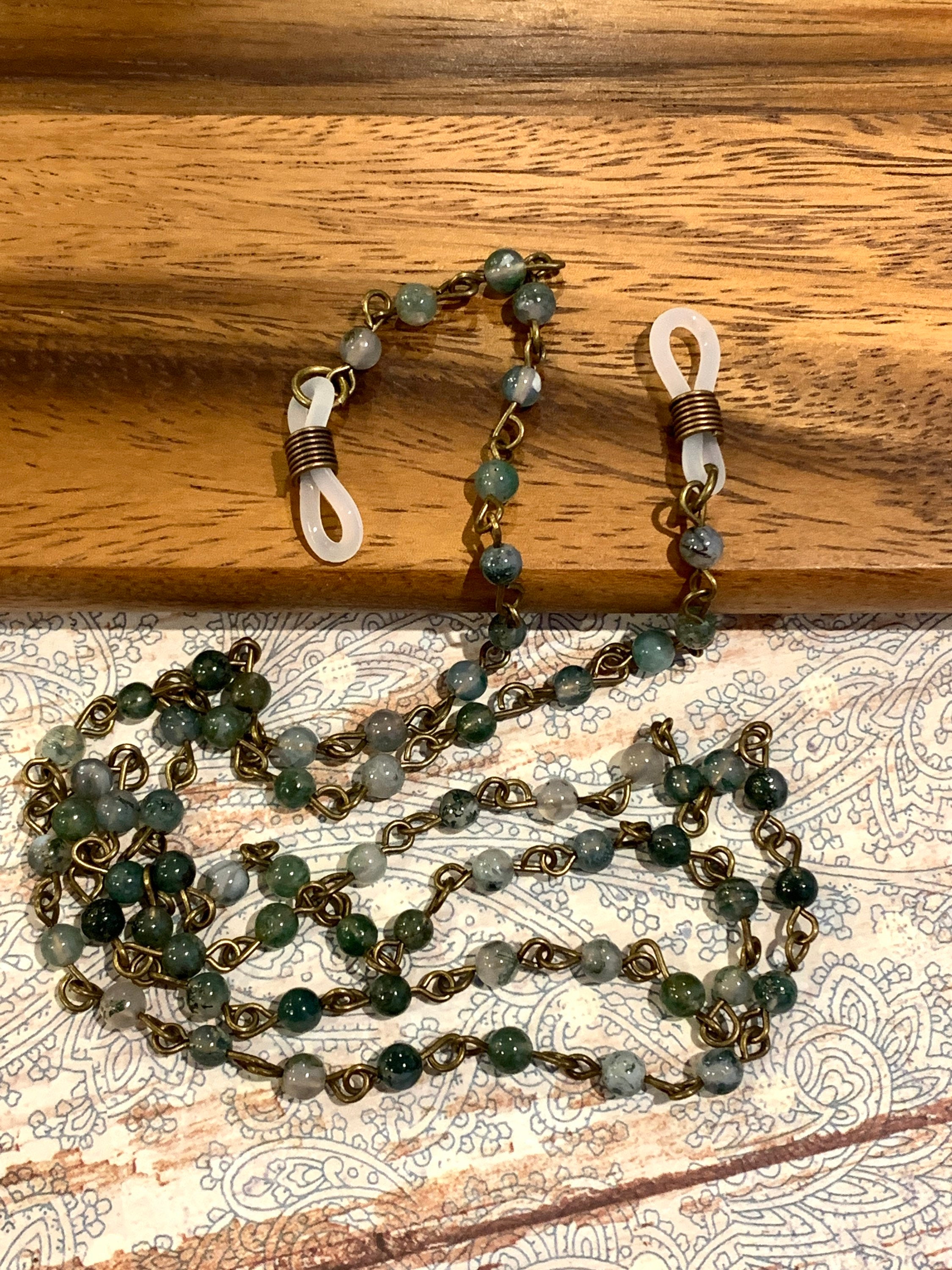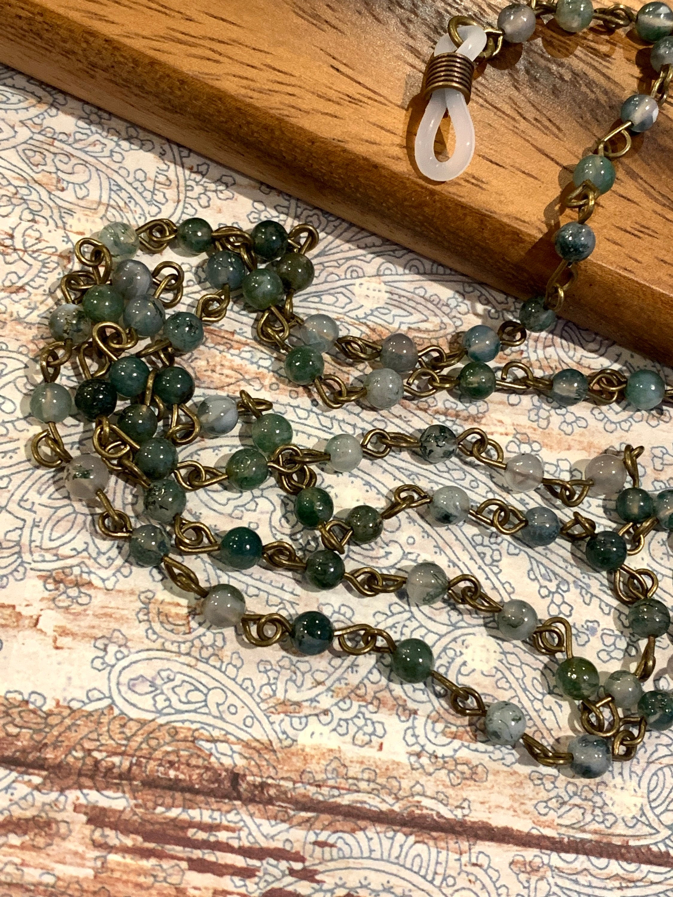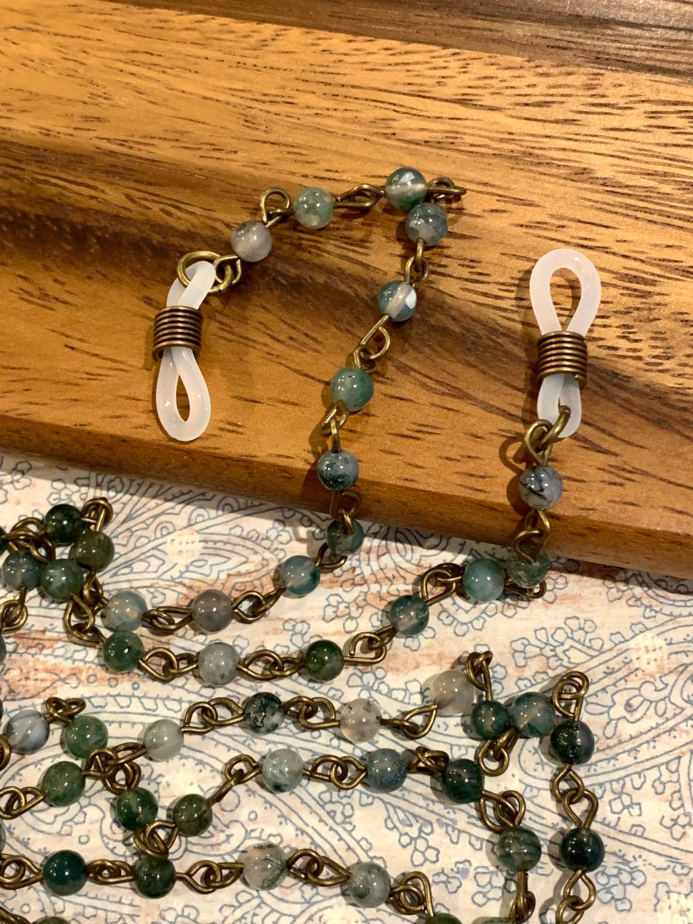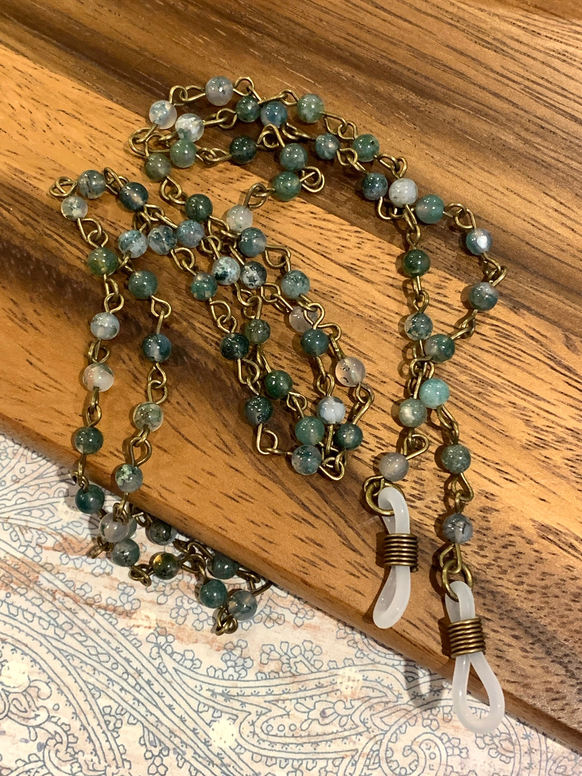 Customized Eyeglass Glasses Natural Indian agate beads with Copper tone Chain 31” length for Women Mother wife Gift